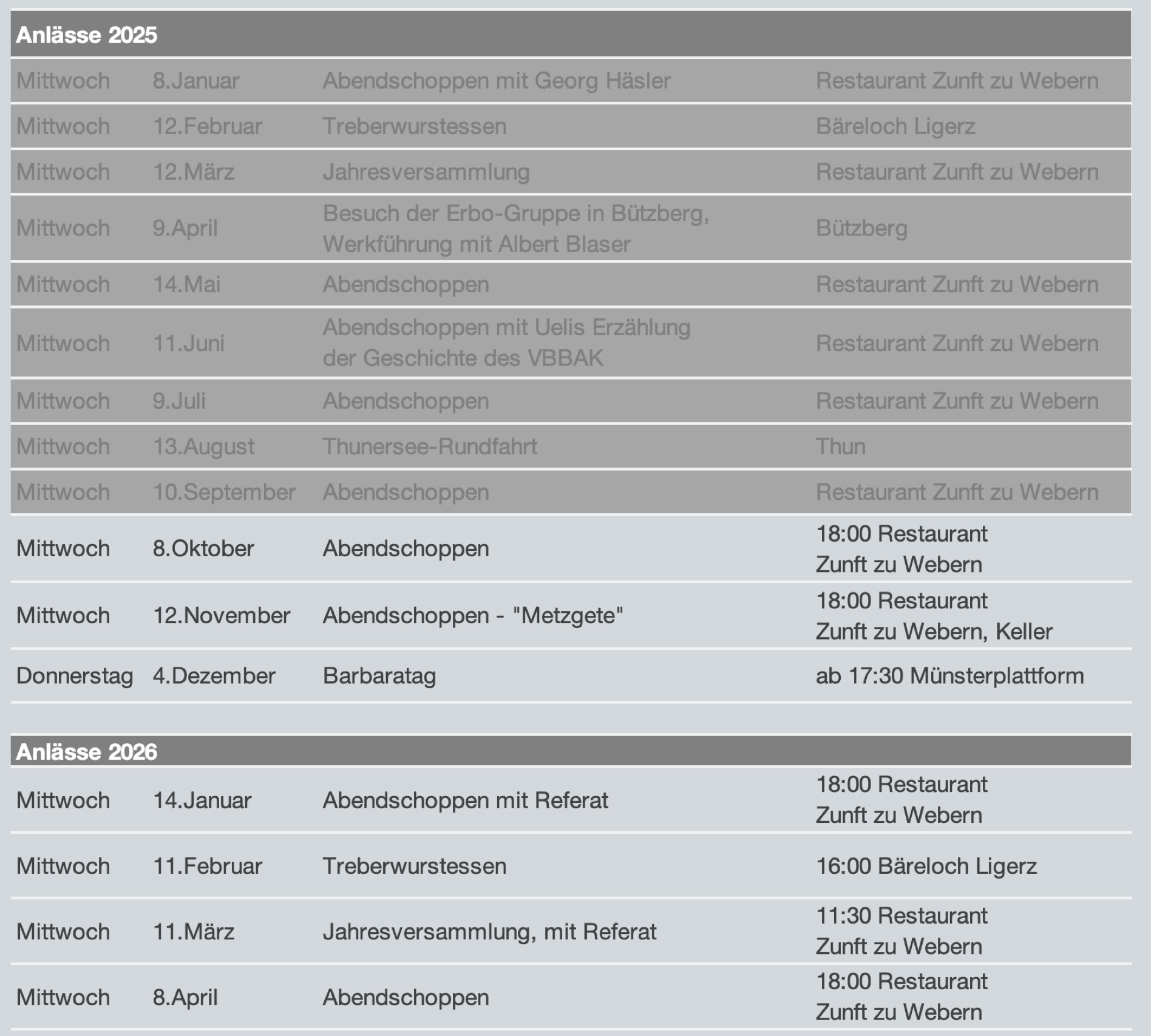 Der VBBAK führt in der Regel am zweiten Mittwoch jeden Monates einen Anlass durch.