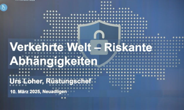 Anschliessend durften wir den Rüstungschef, Dr. Urs Locher willkommen heissen. Sein packendes Referat begann mit einer Beurteilung der aktuellen, geopolitischen Lage. Mit einer vertieften Betrachtung der Auswirkungen auf Europa und namentlich die Schweiz hat er dann glaubwürdig dargelegt, dass wir unbedingt eine starke Rüstungsindustrie brauchen, diese also nicht vernichten sollten. Seine Beurteilung unserer Armee mit der Frage, wie und wie rasch sich diese weiter entwickeln sollte, haben die Zuhörer im Saal dann mit besorgter Miene zur Kenntnis genommen. Zum Abschluss hat der Rüstungschef zu einigen, in der Presse omnipräsenten Beschaffungsprojekten Stellung genommen, namentlich zur Drohne und zum neuen Artilleriesystem.