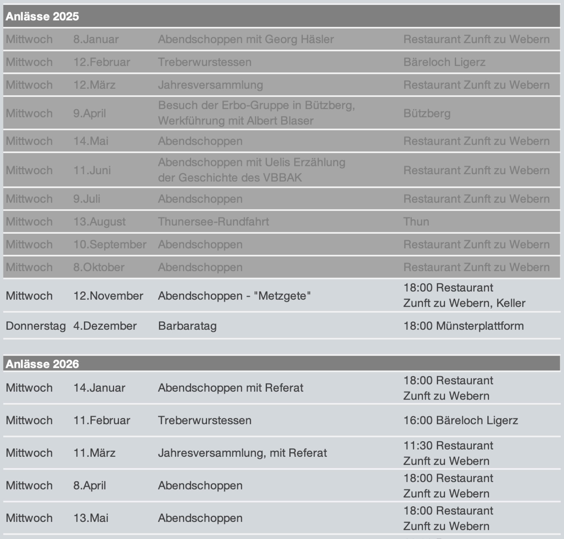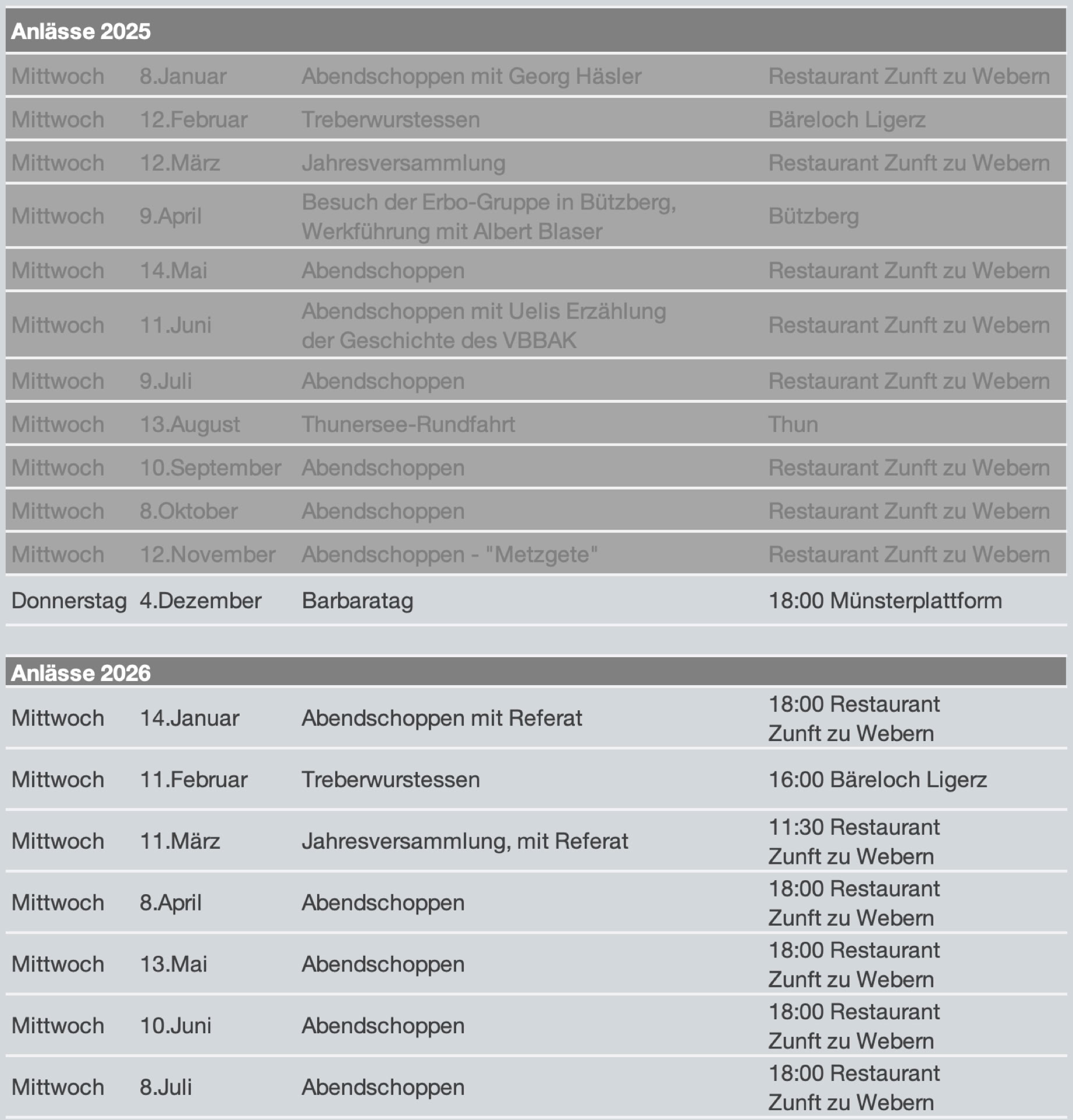 Der VBBAK führt in der Regel am zweiten Mittwoch jeden Monates einen Anlass durch.