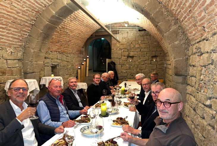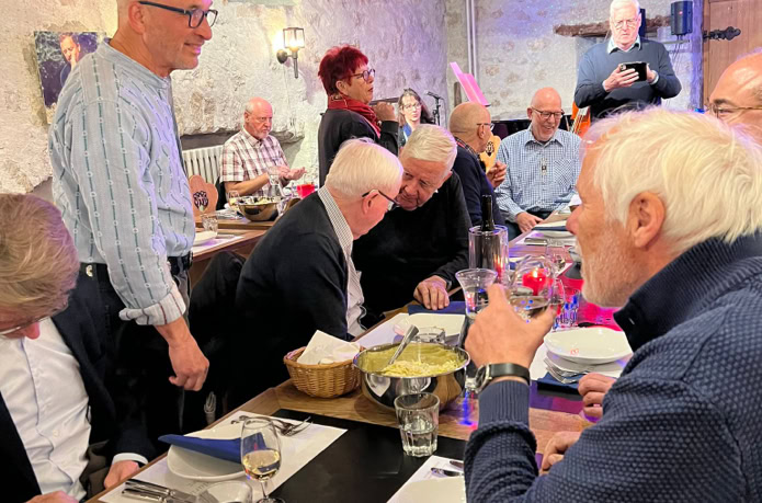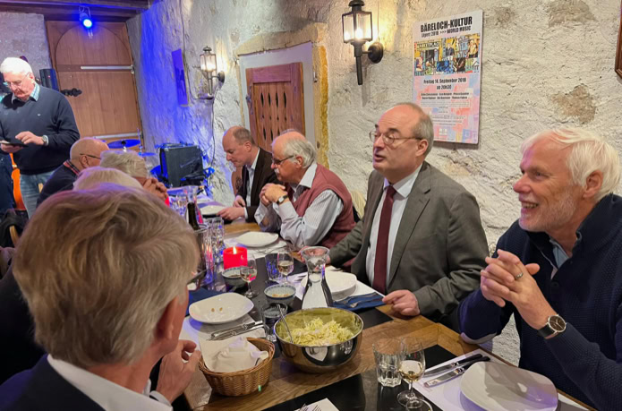 Etwas vor dem eigentlichen Martini-Termin am elften, trafen sich am Mittwoch, 9.November elf unentwegte VBBAKler zum diesjährigen Martinsgans-Essen. Nach dem letztjährigen Schmaus waren natürlich alle auf die Künste der neuen Küchencrew gespannt! Trotz des feinen Gänsemahls mit schmackhaften Herbstbeilagen hat man dann doch allgemein den Abgang von René Schneider aus der Wäbere-Küche bedauert. Nichtsdestotrotz war es einmal mehr ein gelungener Anlass und ein schöner, gemütlicher Abend im Kreise der VBBAK-Kameraden.