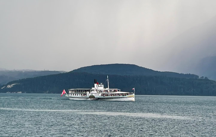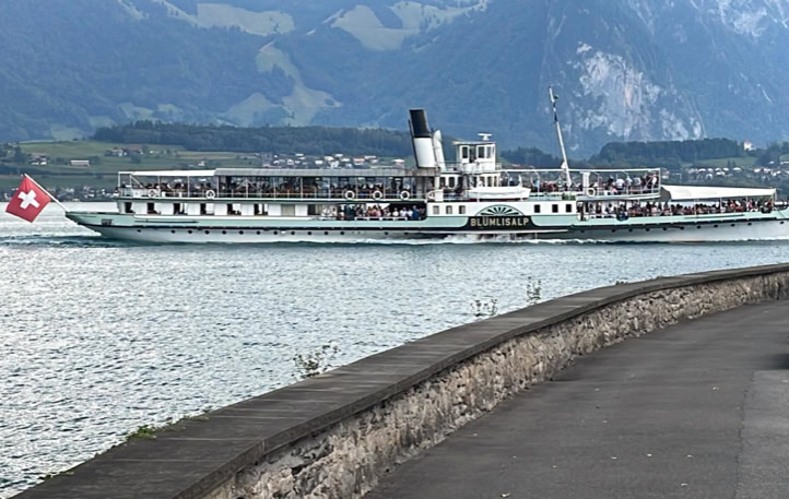 Wie es sich für den August-Anlass gehört, haben sich am elften 16 VBBAK-Kameraden in Thun zur traditionellen Abendrundfahrt auf der Blüemlere eingefunden. Diesmal, dank Impfung, Pandemieentwicklung und Vorsicht wieder ohne Masken, aber mit sehr guter Laune. Das Wetter war prächtig und die Stimmung ausgelassen. Im Salon, an den schön gedeckten Tischen, wurde dann bei Egli im Bierteig, einem feinen „Gschnätzlete“ und einem schönen Weissen der Abend genossen, interessante Gespräche geführt und die Kameradschaft gepflegt. Schön war’s, wir kommen wieder…… !